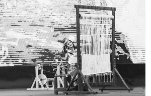 藏毯展會上,演員藝術地表現(xiàn)了藏毯傳統(tǒng)編織技藝。賈海元攝