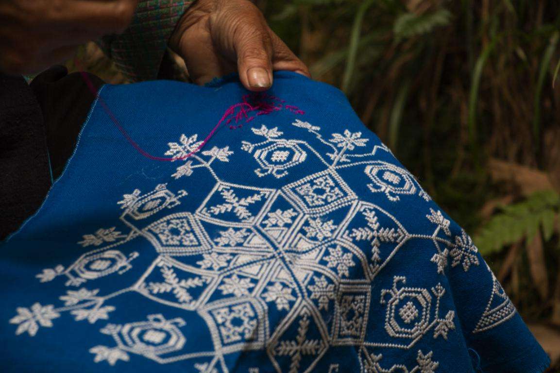 改毛村的苗族婦女們還保留有刺繡的傳統(tǒng),農(nóng)閑時(shí)婦女們總會(huì)相約坐在一起,拿出針線相互之間交流一番。時(shí)而專心致志,時(shí)而和伙伴們閑聊拉拉家常,畫面和諧而且溫情。以前刺繡大多是為了彰顯勤勞,現(xiàn)在刺繡更多是為了傳承文化和增進(jìn)人們之間的情感。