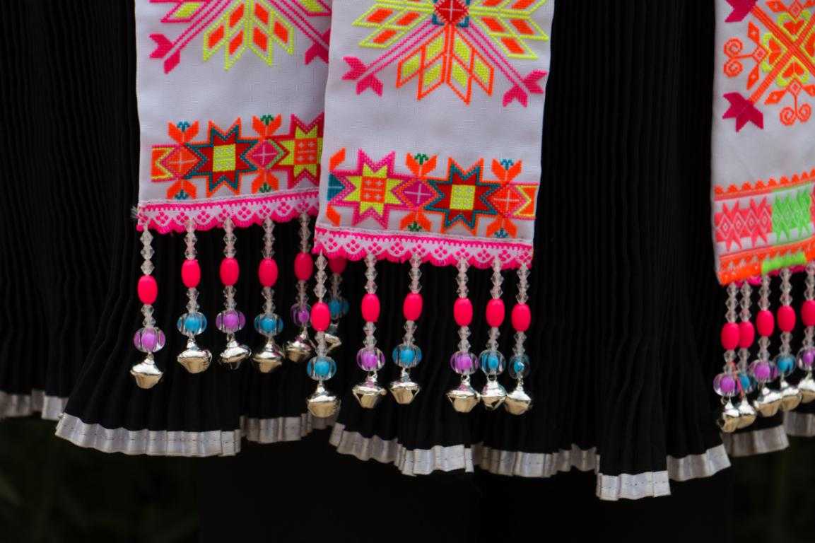 苗族婦女自古以來給人的第一印象都是勤勞樸實(shí),心靈手巧。五星村的苗族婦女們也很好的傳承了祖輩們的優(yōu)良品質(zhì),除了能持家,她們還擅長刺繡。農(nóng)閑時三兩婦女約坐一起,拿出自己的針線,開始了她們的創(chuàng)作,苗族女性刺繡從不需要模板,所有圖案樣式皆構(gòu)