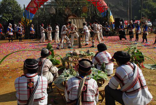 每年農歷十二月,基諾族都要過“特懋克”節(jié)。1988年1月28日,州人大常委會決定把特懋克節(jié)的時間定在每年2月6日至8日。特懋克意為“打鐵節(jié)”。