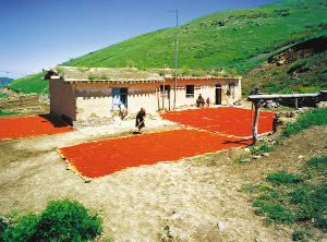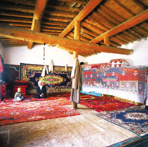 土房的室內(nèi)除有的搭火炕外,其它的裝飾和木房的一樣。到了采收紅花的季節(jié),鮮紅欲滴的紅花曬滿了院子,形成獨(dú)特的風(fēng)景。不論哪個(gè)房間,都可作為臥室,也用于待客,廚房和儲藏室單建,有的還單建馕坑。