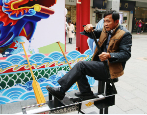 市民模擬劃龍舟。(廣州市民宗局提供)