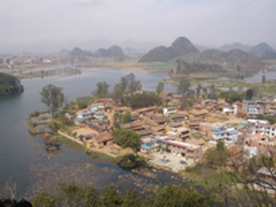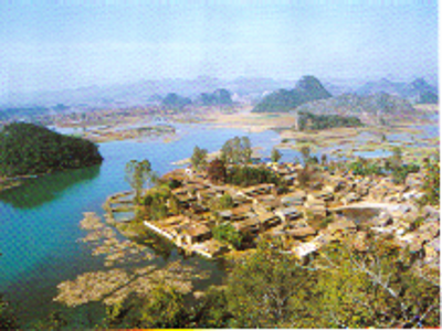 在一次學(xué)術(shù)會(huì)議上,筆者請教了首倡并主導(dǎo)“民族文化生態(tài)村”試點(diǎn)建設(shè)的尹紹亭教授,得知在他們首期的五個(gè)試點(diǎn)村落建設(shè)中,仙人洞村是比較成功的,于是在本項(xiàng)目的調(diào)查中,仙人洞村成為重點(diǎn)考察的對象之一?!跋扇硕匆妥逦幕鷳B(tài)村”位于云南丘北縣城西北16公里的普者黑湖畔?!捌照吆凇睘楫?dāng)?shù)匾妥迦瞿嵴Z,意為“魚蝦多的湖潭”。普者黑實(shí)際是由眾多湖泊、河流構(gòu)成,總面積達(dá)165平方公里,已經(jīng)開發(fā)成由5個(gè)景區(qū)、56個(gè)景點(diǎn)組成的滇東南國家級(jí)著名旅游景區(qū)。