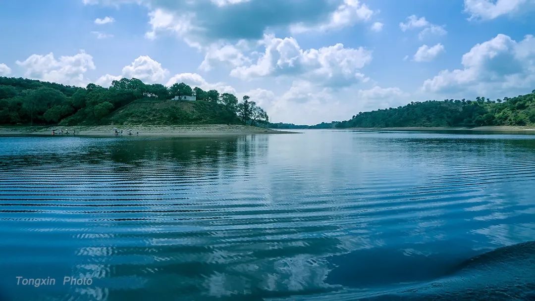 一璧晴藍(lán)且掬來(lái),湖光色暖共風(fēng)裁。