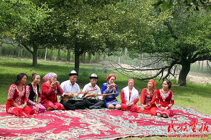 據(jù)色帕巴依鄉(xiāng)黨委委員阿依木古麗·艾山卡德介紹,該鄉(xiāng)在鄉(xiāng)中心小學(xué)專門開設(shè)課程教學(xué)生學(xué)彈庫姆孜琴,并積極舉辦“我為庫姆孜代言”活動(dòng),積極培養(yǎng)庫姆孜傳承人。此外,鄉(xiāng)里還專門組建有庫姆孜彈唱隊(duì)。“我們利用百日文化廣場(chǎng)和日常的演出走村串巷,積極參加縣宣傳部開展的各項(xiàng)文體活動(dòng)。今年2月開展的群眾大會(huì),把庫姆孜音樂重新填詞,配合惠民政策宣傳,將傳播民族文化與群眾思想政治工作相結(jié)合?!蓖瑯?,在烏恰縣吾合沙魯鄉(xiāng)恰提村,當(dāng)?shù)伛v村工作隊(duì)積極組織20名返鄉(xiāng)學(xué)生開辦“庫姆孜彈唱文藝培訓(xùn)班”,廣泛調(diào)動(dòng)返鄉(xiāng)大學(xué)生加入到文化傳承的行列中。