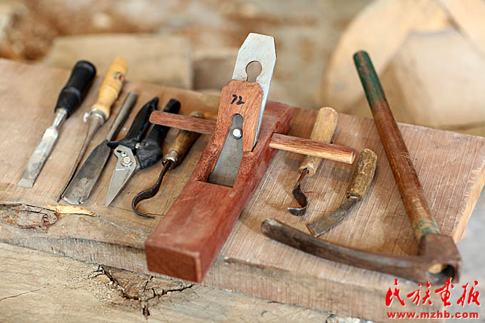 這間工作室的主人叫阿吉?jiǎng)e克·買買達(dá)洪,主人恰巧有事外出,他的弟弟,年輕朝氣的吾蘭別克張羅著給記者們當(dāng)起了翻譯。正忙活著打磨樂器的小伙叫木沙,今年31歲,問起庫姆孜的制作工藝,他才把頭抬起來,笑著說:“我做這個(gè)十年了。一把庫姆孜,往往琴身是杏木,蓋子是松木。杏樹、松樹木切割后放在干燥的地方,一兩年后才能用。”庫姆孜有三根弦,琴弦以前用動(dòng)物的腸子手工自制,現(xiàn)在有的工匠開始使用現(xiàn)成的弦。判斷庫姆孜手工藝人手藝高低的關(guān)鍵何在?木沙解釋說,“要看彈出來的聲音。木頭的原料不同,出來的聲音也不同?!边@個(gè)回答似乎也隱藏了手工藝人的絕活所在,可意會(huì)不可言傳的技藝,往往在一代代的工匠手中以師徒親授的方式傳承。