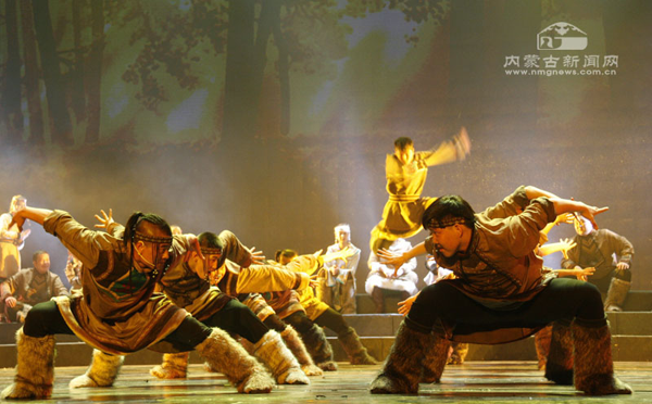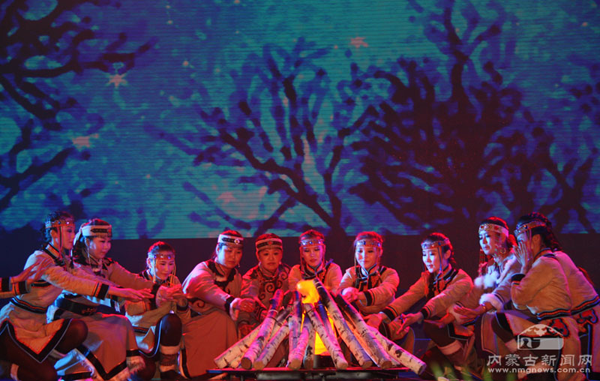 演員們的表演也頗為出色。參演的60多名演員全部來自鄂溫克自治旗烏蘭牧騎,這是一支以年輕人為主的隊伍,他們在舞臺上的精彩表現(xiàn)給這部歷史題材的歌舞劇增添了青春的活力。比如“搶樞”一場,不僅形象地再現(xiàn)了鄂溫克民間一項傳統(tǒng)娛樂活動——“搶樞”,突顯了年輕人活潑好動的特點(diǎn),而且傳達(dá)出鄂溫克年輕人在遷徙途中不畏艱險、苦中作樂的頑強(qiáng)精神。尤其是在本場最后,小伙子們一段奔放狂野的群舞盡顯陽剛之美,展現(xiàn)了鄂溫克民族的豪爽與激情。