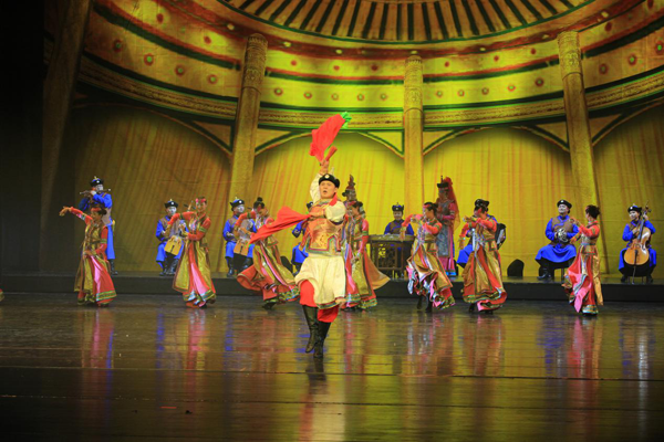 作為蒙古民族歌舞和民俗風(fēng)情最具代表性的經(jīng)典節(jié)目,《鄂爾多斯婚禮》已風(fēng)靡草原,享譽(yù)國內(nèi)外。那動聽悠揚(yáng)的歌曲,優(yōu)美豪放的舞姿,華麗獨特的服飾,特別是那貫穿其中的鄂爾多斯蒙古族民間婚禮儀式,情節(jié)曲折,情思深幽,再現(xiàn)草原久遠(yuǎn)而優(yōu)美的傳統(tǒng),表現(xiàn)了鄂爾多斯蒙古族人民對生活的熾熱情感和豪爽善良的性格,反響熱烈,久演不衰。