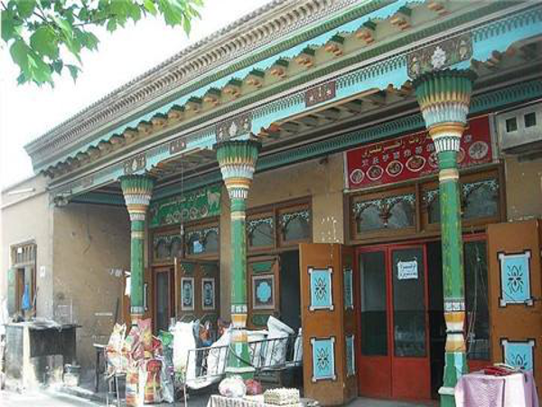 多用虛實對比,重點點綴的手法,喜歡采用磨磚拼花、石膏花、彩畫、磚雕、木刻等裝飾,裝飾圖案以及窗欞花飾,多為花草或幾何圖形;門窗口多為拱形;色彩則以白色和綠色為主調(diào),表現(xiàn)出伊斯蘭教的特有風(fēng)格。