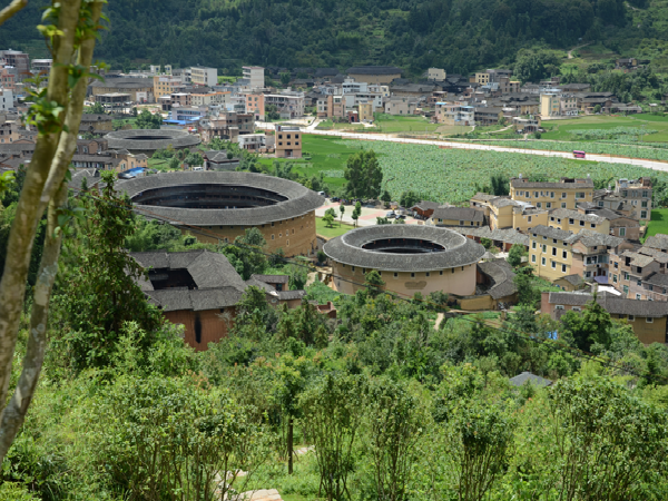 福建土樓所在的閩西南山區(qū),正是福佬與客家民系的交匯處,地勢險峻,人煙稀少,一度野獸出沒,盜匪四起。聚族而居既是根深蒂固的中原儒家傳統(tǒng)觀念要求,更是聚集力量、共御外敵的現(xiàn)實需要使然。福建土樓依山就勢,布局合理,吸收了中國傳統(tǒng)建筑規(guī)劃的“風水”理念,適應聚族而居的生活和防御的要求,巧妙地利用了山間狹小的平地和當?shù)氐纳痢⒛静?、鵝卵石等建筑材料,是一種自成體系,具有節(jié)約、堅固、防御性強特點,又極富美感的生土高層建筑類型。這些獨一無二的山區(qū)民居建筑,將源遠流長的生土夯筑技術推向極致。