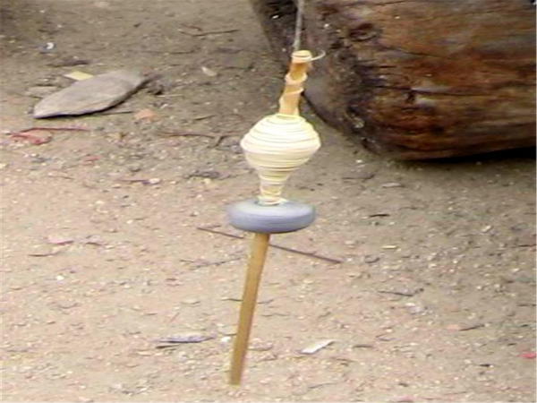 “紡”是把野生棉花或木棉花用絞棉機(jī)去除棉籽后捻成線,纏繞到手捻紡輪車上,包括錯(cuò)紗、配色、綜線、攀花等。