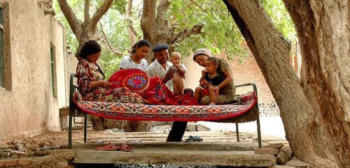 走進(jìn)火焰山的時(shí)候,你就會(huì)發(fā)現(xiàn)一種奇怪的現(xiàn)象:家家戶戶的門(mén)口或者院落里的葡萄架下,多擺放著一兩張鐵床或木床,甚至有的慶就擺在水渠旁邊。游客會(huì)驚奇地部:這是人們睡覺(jué)的床嗎?是的,因?yàn)橥卖敺珶崃?,夜里大家都喜歡在房外睡覺(jué),外面夜風(fēng)涼爽,又沒(méi)有蚊子咬,當(dāng)?shù)孛耧L(fēng)淳樸,素來(lái)有“夜不閉戶、路不拾遺”的好風(fēng)尚,所以人們都放心 在屋外睡覺(jué),一覺(jué)能睡到日上三竿。你看到的這種“鐵床擺在大門(mén)外”的情景,在吐魯番的許多鄉(xiāng)村,甚至在吐魯番市區(qū)內(nèi),都是人們司空見(jiàn)慣的。
