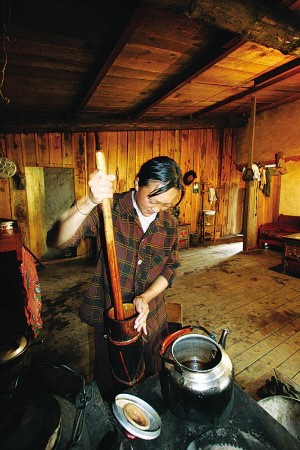 受藏族生活方式的影響,珞巴族平時(shí)也喝酥油茶