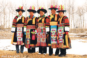 隨著時(shí)代的更替,土族女性的服飾發(fā)生了很大變化,有的傳統(tǒng)服飾已消失,有的服飾經(jīng)過(guò)推陳出新,重放光彩。如舊時(shí)的繡花高領(lǐng),如今變成直翻兩用領(lǐng);蓋在“扭達(dá)”上的長(zhǎng)頭巾——“扭達(dá)爾秀巾”,變成了今日土族女性使用的短頭巾?,F(xiàn)今,廣大土族女性,不僅喜穿本民族服飾,而且還愛(ài)著時(shí)尚服飾,她們或使土族服飾時(shí)裝化,或使時(shí)裝土族服飾化,豐富了土族的服飾文化。