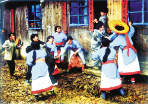 花瑤山寨獨(dú)具個(gè)性的婚俗活動,除了對新人的美好祝福,也是妹子們亮衣裳、亮嗓音、亮智慧和尋覓心上人的大好時(shí)機(jī)。“最壞的人就是媒人公,我們姐妹們朝夕相處,從不分離,卻被他們一個(gè)個(gè)給騙走了!”山寨里的妹子都這樣懷恨媒人公(可誰也離不開他們喲)。在妹子們的眼中,前來送禮、接親的漢子,都是些不懷好意的媒人公,非教訓(xùn)一回不可——婚俗中的狂歡“打泥巴”便開始了。
