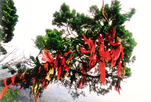 花瑤同胞祖祖輩輩與寨子里的古樹久久相依。在他們心中,有著頑強(qiáng)生命力的老樹飽吸天地之靈氣,百年不腐,千年不朽,早已是神,時(shí)時(shí)都在庇佑他們。故對之倍加敬仰,又十分親近,誰都不會貿(mào)然去傷害它們。即便是蟲蛀樹空枯朽倒地,也不敢拖回家用,而是讓其自生自滅,還原于土。