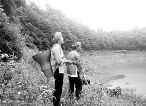 記得小時(shí)候有一回上學(xué),我在“之”字形的山道上遇到一撥“背腳佬”。只見(jiàn)他們那布滿(mǎn)蚯蚓般青筋的腿肚顫抖著,手中鑲著鐵釘?shù)拇蜩圃谑迓飞隙‘?dāng)?shù)貫R出火星,草鞋里的雙腳踏著堅(jiān)實(shí)的土地。每當(dāng)轉(zhuǎn)過(guò)一個(gè)彎,他們就一邊把打杵支在背簍下面,一邊發(fā)出“哎——喲嗬——”的吼聲。抹下一串汗珠,疲勞仿佛也被扔下山,引起陣陣回響。不知是誰(shuí)還吼起了粗獷的山歌:“郎在高山打傘來(lái),姐在房中做花鞋,雙手接過(guò)郎的傘,用手把姐抱在懷……”
