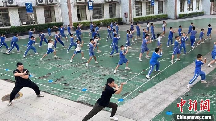 深圳市寶安區(qū)西鄉(xiāng)小學(xué)的學(xué)生們?cè)诰毩?xí)華林派武術(shù)操 西鄉(xiāng)小學(xué) 供圖