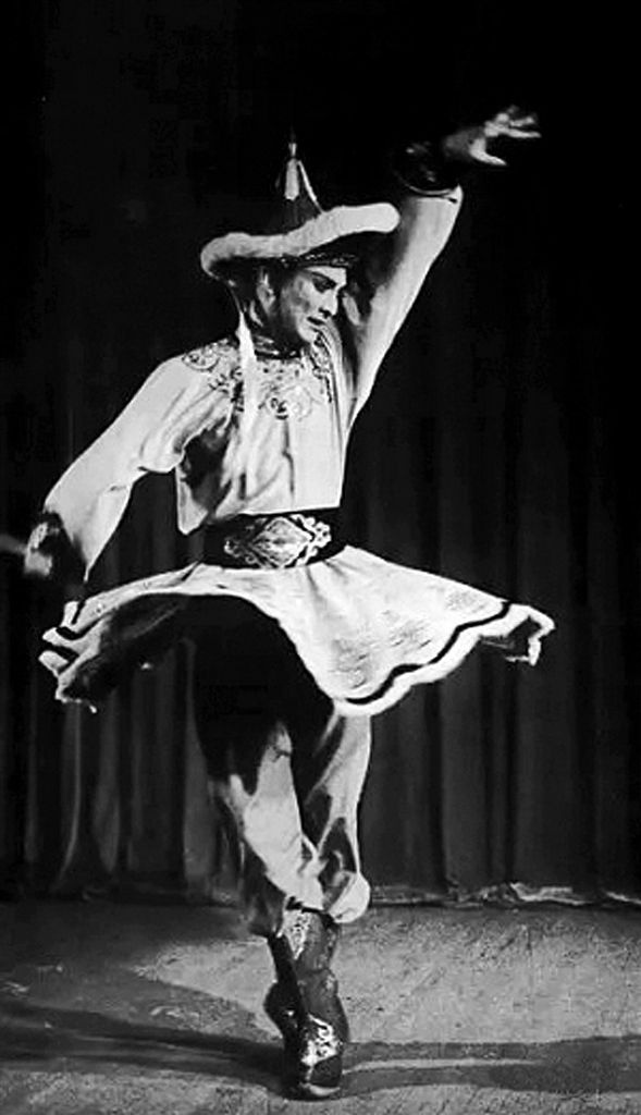 1947年,從張家口開往綏遠的列車上,有個青年目不轉(zhuǎn)睛地凝視著窗外——無邊無際的草原上,一位牧馬的漢子騎術(shù)精湛,氣魄勇猛,手中揮舞著套馬桿于馬群中自由穿梭,剽悍而又豪邁。“就是這個感覺!”青年靈光乍現(xiàn)。不久,雄渾激昂的《牧馬舞》在舞蹈界引起轟動,尤其是那策馬揚鞭的動作,節(jié)奏明快剛?cè)嵯酀?,日后在無數(shù)蒙古舞作品中反復出現(xiàn)。編創(chuàng)這支舞蹈的青年就是著名舞蹈表演藝術(shù)家、編導藝術(shù)家賈作光。