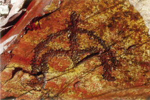 彩繪巖畫作為南系巖畫的主要代表類型,在寧夏境內(nèi)并不多見,僅在石嘴山白芨溝的一處坐北朝南的天然洞窟中發(fā)現(xiàn),巖洞敞開,可容納數(shù)百人。被發(fā)現(xiàn)的彩繪巖畫分布在高8米、長(zhǎng)10米的崖壁上,坐西向東,以赭石顏料涂繪,有24組42幅精美的巖畫,內(nèi)容包括狩獵、騎者、牧歸,以及牛、羊、馬、狗等動(dòng)物。這些罕見的彩繪巖畫時(shí)至今日依然是“養(yǎng)在深閨人未識(shí)”,更讓人擔(dān)心的是隨著環(huán)境污染造成的自然破壞已經(jīng)讓這些彩繪巖畫顏色發(fā)白,亟待引起重視,加以保護(hù)。