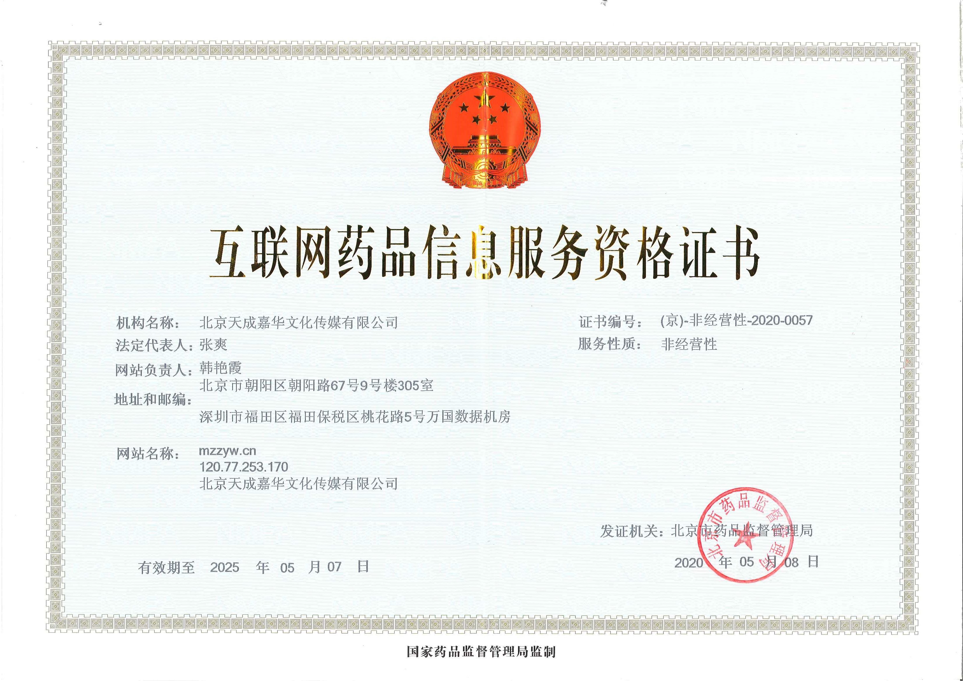互聯(lián)網(wǎng)藥品信息服務資格證書