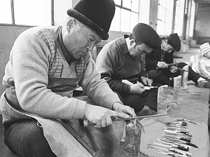 維吾爾族刀匠正在制作小刀。 韓連赟攝