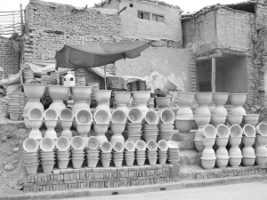 新疆喀什隨處可見(jiàn)擺放整齊的土陶。