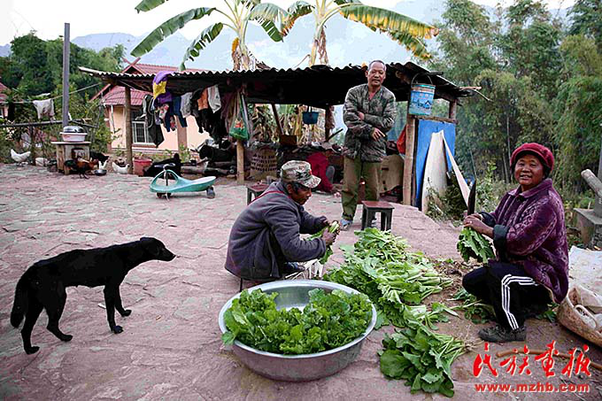 在娜作家記者見到了娜作的老伴兒大巖恩,他邊清理打捆著剛剛采摘下來(lái)的青菜邊說(shuō):“這些小菜城里人特別愛吃,沒(méi)有上化肥,一點(diǎn)污染沒(méi)有。這筐菜在城里一定能賣個(gè)好價(jià)錢?!?/p>