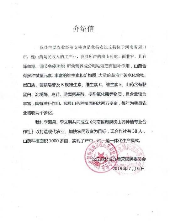因?yàn)椤盎比龑殹钡男б婷黠@,合作社于2013年成立之初吸納社員102戶(hù),種植面積達(dá)1000多畝。2014年5月,“槐三寶”商標(biāo)順利通過(guò)國(guó)家農(nóng)業(yè)部無(wú)公害農(nóng)產(chǎn)品認(rèn)證和無(wú)公害農(nóng)產(chǎn)品標(biāo)識(shí)使用權(quán),基地獲河南省農(nóng)業(yè)廳無(wú)公害農(nóng)產(chǎn)品產(chǎn)地認(rèn)定。發(fā)展到現(xiàn)目前,2019年,其種植面積已經(jīng)超過(guò)4000畝,產(chǎn)量在5500噸以上。據(jù)合作社監(jiān)事李文明講:“今年沒(méi)澇,現(xiàn)在七月,山藥快成熟了,可以預(yù)見(jiàn),是個(gè)豐收年?!薄?/p>