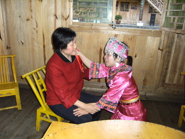 哭嫁歌內(nèi)容有“母女對哭”“嫂妹對哭”“姐妹對哭”“哭離娘席”“哭別祖宗”“哭兄弟”“哭梳頭”“罵媒人”“哭上轎”等,甚至還有同村同齡未婚姑娘的群哭——“哭十姊妹”。哭嫁歌源于土家族姑娘出嫁前的哭嫁之俗,越是臨近婚期,哭聲越悲,甚至通宵達旦。2010年,“土家族哭嫁歌”已被列入第三批國家級非物質(zhì)文化遺產(chǎn)名錄。