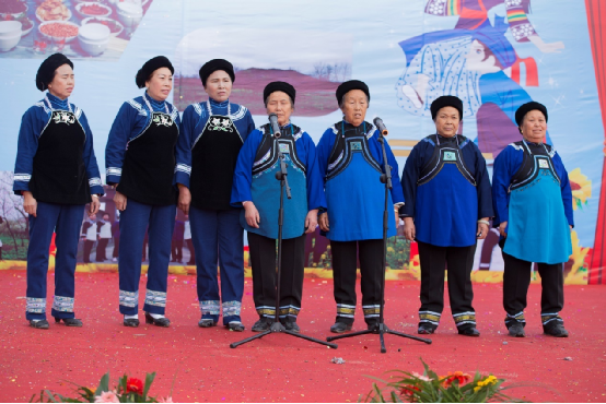 扁坡村“三月三”隨著社會的進步,活動的重心逐漸向民族文化等歌舞表演形式轉移,但布依族從古至今都是一個注重農耕文明的民族,他們對于大地的熱愛,無以言表卻在歌舞中流露著民族的敬仰之情。阿婆們穿著質樸的民族服飾,深藍的衣裙襯得她們莊重又從容,唱著那布依老歌,仿佛家中的老奶奶坐在長椅上溫柔地向孩子們訴說過去的種種。