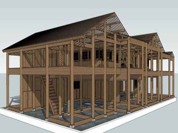 傣族人民多居住在平壩地區(qū),常年無(wú)雪,雨量充沛,年平均溫度達(dá)21℃,沒(méi)有四季的區(qū)分,干欄式建筑是很合適這種環(huán)境。竹樓用各種竹料(或木料)穿斗在一起,互相牽扯,結(jié)構(gòu)極為牢固。