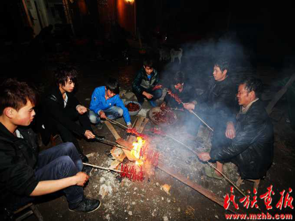 這次結(jié)婚的共有15對新人(多時有二三十對),均來自本寨的青年男女。婚禮從大年二十六開始,共進(jìn)行三天,在三天的婚禮中新郎新娘家均有婚宴,尤以第一天中午的規(guī)模最大也最為隆重。