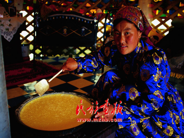 呼倫貝爾牧民在做奶皮子