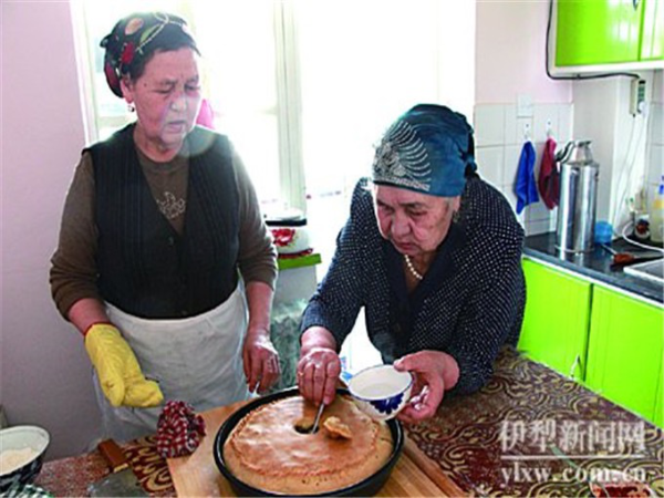 她回憶,小時(shí)候,他們家住在伊寧市六星街。家里有個(gè)大大的院子,院子里有棵茁壯的杏樹(shù),杏樹(shù)下是一方土打的正方形的拱形烤爐。那時(shí)候,塔塔爾族人家的院子里,都會(huì)有這樣一方大烤爐。她的母親就常在大杏樹(shù)下忙碌,烤餅干、列巴、拜列西。一烤起來(lái),滿(mǎn)院子都是烘烤的食物的馨香。“母親手巧得很,什么都會(huì)做?!辟I(mǎi)斯胡旦說(shuō),臉上現(xiàn)出回想母親健在時(shí)所帶來(lái)的溫馨神情。