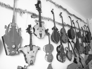 何曉制作的東布爾各具形態(tài),其中融合了其他民族樂器的特點。