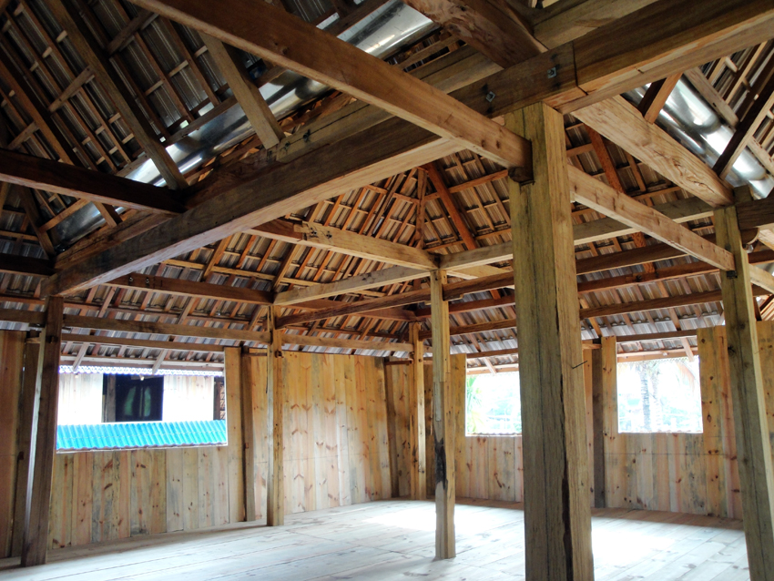 西雙版納傣族竹樓多為方形,分上下兩層,上層為居住層,堂屋、臥室各一間,外有開(kāi)放的前廊和曬臺(tái),樓下架空。堂屋中設(shè)火塘,供日常飲食、待客?;鹛脸D昊鸩粶纭EP室為一大通間,在樓面上鋪墊、掛帳,席地而臥,家中數(shù)代同室而寢,睡覺(jué)位置按長(zhǎng)幼次序排列,長(zhǎng)輩靠里,晚輩靠外。傣族一般不歡迎外人進(jìn)入臥室。屋頂為歇山式,脊短,坡陡,下有披屋面即偏廈,有重檐屋頂遮陽(yáng)擋雨。一般沒(méi)有窗戶,墻及樓板多縫隙,可以通風(fēng),達(dá)到了室內(nèi)陰涼的效果。