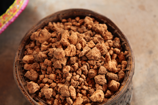 喝茶是布朗族的另一個嗜好,并且善作茶。竹筒茶和酸茶是布朗族所特有的。竹筒茶是將夏天采集的茶葉炒熟后,置入竹筒內(nèi),然后用闊葉封口保存。飲用時再將竹筒放在火上烘烤,直到把竹筒烤至焦黃,剖開竹筒,用開水沖泡,在濃烈的茶香中有一種竹的清香。酸茶是將鮮茶炒熟,置放到潮濕處,待發(fā)酵后放入竹筒,封口埋入土中,月余取出飲用,另具一種風(fēng)味。許多婦女還愿把酸茶放入口中細(xì)嚼,可以助消化和生津解渴。民間還常把酸茶做饋贈親友的禮品。居住在西雙版納布朗山的布朗族婦女,尤其是懷孕婦女嗜食當(dāng)?shù)丶t土,據(jù)說食此種紅土有止吐、除腥、提神之效。