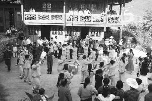 從古至今,每年的正月初九“舍巴節(jié)”(舍巴:土家語擺手舞的意思)、三月三“祭祖節(jié)”、“冬至會”,土家人都要在擺手堂舉行盛大的祭祀活動。農(nóng)閑時的夜晚,在農(nóng)家院壩,點燃熊熊篝火,男女老少在有奏的鑼鼓聲中歡快地舞蹈,盡情地歌唱。清代文人彭施鐸在《竹枝詞》中載:“福石城中錦作窩,土王宮前水生波,紅燈萬盞人千疊,一片纏綿擺手歌。”寥寥數(shù)語把土家人跳擺手舞的盛況真實地展現(xiàn)出來。