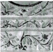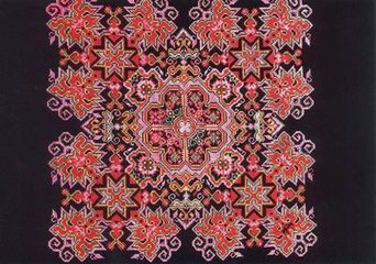 侗族刺繡工藝流行于湘、桂、黔三省交界處的侗族聚居區(qū)。圖案紋樣多取材于自然景物,如花、鳥、魚、蟲之類。畫面生動(dòng)活潑,色彩明麗。