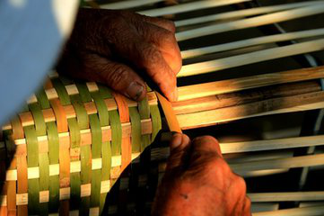 傣族竹編工藝是傣族的傳統(tǒng)工藝美術(shù)形式,歷史悠久,造型古樸,美觀(guān)實(shí)用。由于我國(guó)傣族主要聚居在云南等地的熱帶、亞熱帶地區(qū),居住地周?chē)嗯c竹子為伴,在生產(chǎn)生活中就地取材,形成了傣族世代相傳的主編技藝,具有著鮮明的民族特色。傣族竹編選材主要采用藤竹、粘竹、大黃竹以及巨龍竹等編織,將竹絲、篾片挑壓交織,被挑壓的篾為“經(jīng)”,編織的篾為“緯”,由經(jīng)與緯的挑壓可以編織出千變?nèi)f化的圖案,從而制作出千姿百態(tài)的竹編產(chǎn)品。代價(jià)的村村寨寨都掩映在竹林翠色之中,住的是竹樓,用的是各式自編的竹器,大至床、桌、柜、席,小至帽、盒、籃、簍,無(wú)一不為竹編。精美的竹編不僅是傣族人民的日常用品和生產(chǎn)工具,更是傣族人民生活藝術(shù)的外在表現(xiàn),它已與傣族人民融為一體,已經(jīng)成為傣族最重要的民族文化載體和文化傳播的媒介。