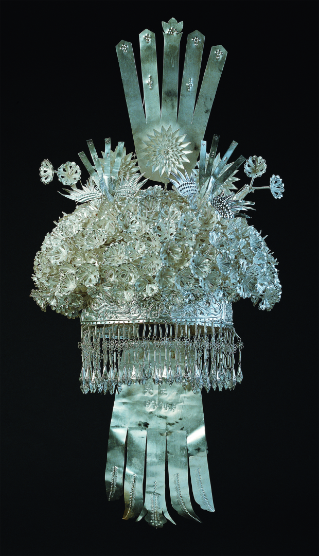 銀飾是苗族服飾文化的重要組成部分,也是苗族貴金屬傳統(tǒng)手工藝發(fā)展水平的集中體現(xiàn)。苗族銀飾以其多樣的品種、奇美的造型和精巧的工藝,向人們呈現(xiàn)了一個(gè)瑰麗多彩的藝術(shù)世界,展示著一個(gè)有著豐富內(nèi)涵的精神世界。