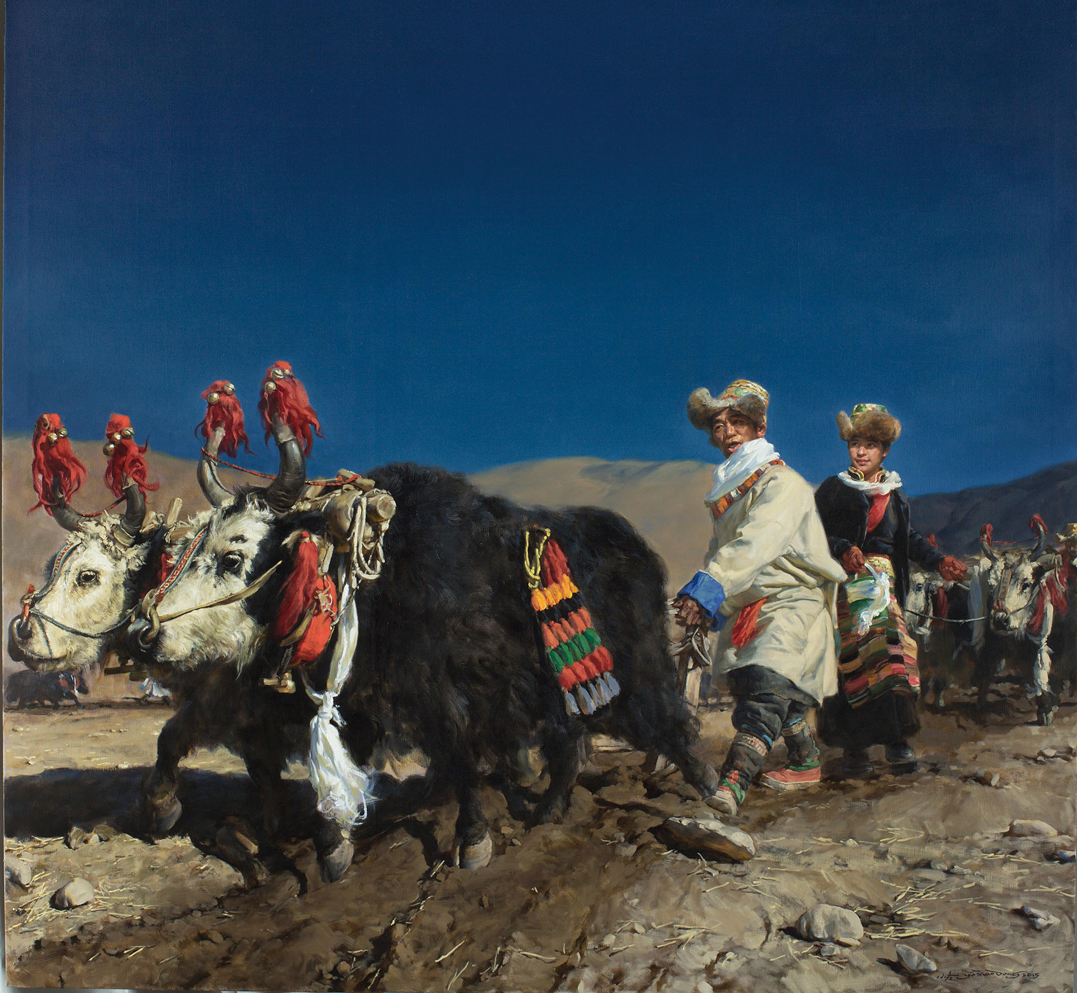 農(nóng)業(yè)。藏區(qū)的主要農(nóng)作物有青稞、小麥、豌豆、油菜、蕎麥等。過去,藏族的農(nóng)業(yè)區(qū)生產(chǎn)工具比較落后,傳統(tǒng)的耕地方式是“二牛抬杠”。即在犁的前轅上拴一橫杠,橫杠兩頭分別固定在兩頭牛的脖頸上,一人扶犁并揚鞭趕牛犁地。舊時,木犁的犁尖由堅硬的青岡木做成,入土兩三寸,有的地方在木犁尖是套上鐵犁尖,入土更深。藏區(qū)的川壩地比較肥沃,可以連年耕種,山坡地較貧瘠,種兩年就要休耕一年,名曰歇地。