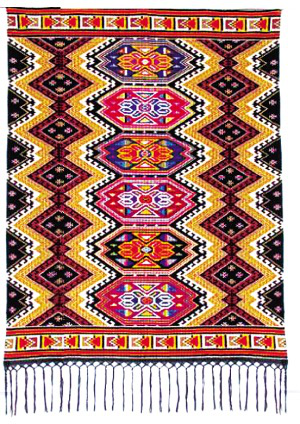 在長(zhǎng)期的藝術(shù)實(shí)踐中,葉水云感到自己的專業(yè)美術(shù)水平有限。于是,她考入鳳凰職業(yè)中專學(xué)習(xí)美術(shù)專業(yè),并被留校任教,后又在湘西州教育學(xué)院進(jìn)修大學(xué)美術(shù)專業(yè)。“土家織錦沒有草稿,最重要的一個(gè)環(huán)節(jié)就是配色。以前配色沒有理論指導(dǎo),主要從個(gè)人感覺出發(fā),喜歡紅、綠等艷色系。除了講究圖案平整以外,配得好不好自己也不清楚。學(xué)習(xí)后才慢慢認(rèn)識(shí)到,配色應(yīng)注重冷暖色調(diào)的對(duì)比與襯托。”所以,葉水云織出來(lái)的“西蘭卡普”色彩更為統(tǒng)一調(diào)和,艷而不俗,粗獷中有細(xì)節(jié),大氣中有精巧,看上去更加舒服。