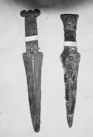 2006年,涼山州文化局請文物專家鑒定了公安機關(guān)收繳的鹽源文物,鑒定現(xiàn)場有3把雙環(huán)首青銅短劍。其中一把青銅短劍長27厘米,一把長27.5厘米,還有一把26厘米,均為戰(zhàn)國至漢代時期文物。
