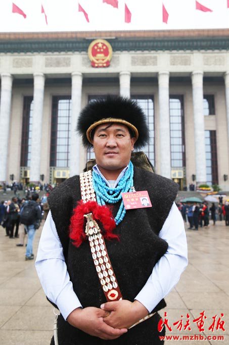 參加黨的十九大、西藏自治區(qū)珞巴族代表達波兒(滕俊 攝影)