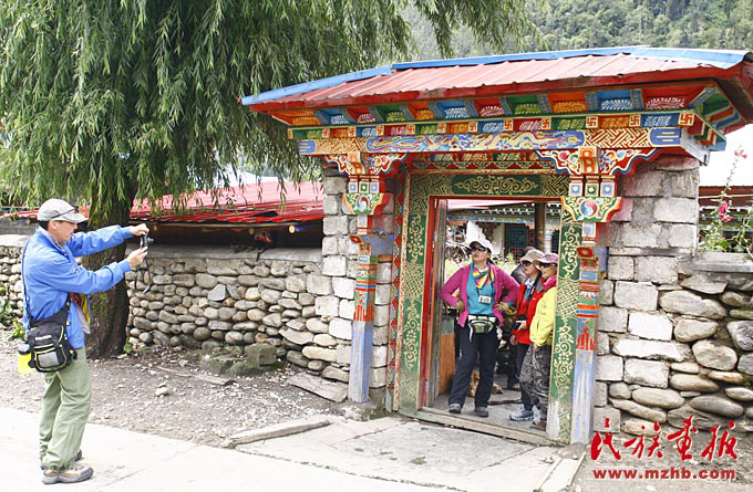 在珞巴族家門前留影紀念的游客絡繹不絕(列來拉杜 攝影)