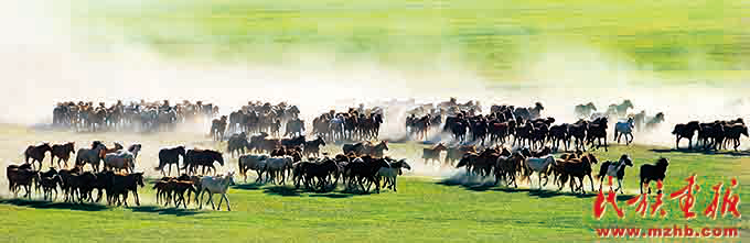 內(nèi)蒙古自治區(qū)呼倫貝爾市鄂溫克族自治旗是內(nèi)蒙古東部的綠色凈土,這塊未被污染的寶地上萬馬奔騰(鄂溫克族自治旗攝影協(xié)會(huì) 供圖)