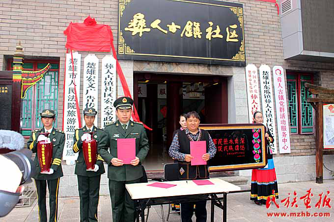 彝人古鎮(zhèn)社區(qū)與駐楚某部隊結(jié)成了軍民共促民族團(tuán)結(jié)進(jìn)步示范單位