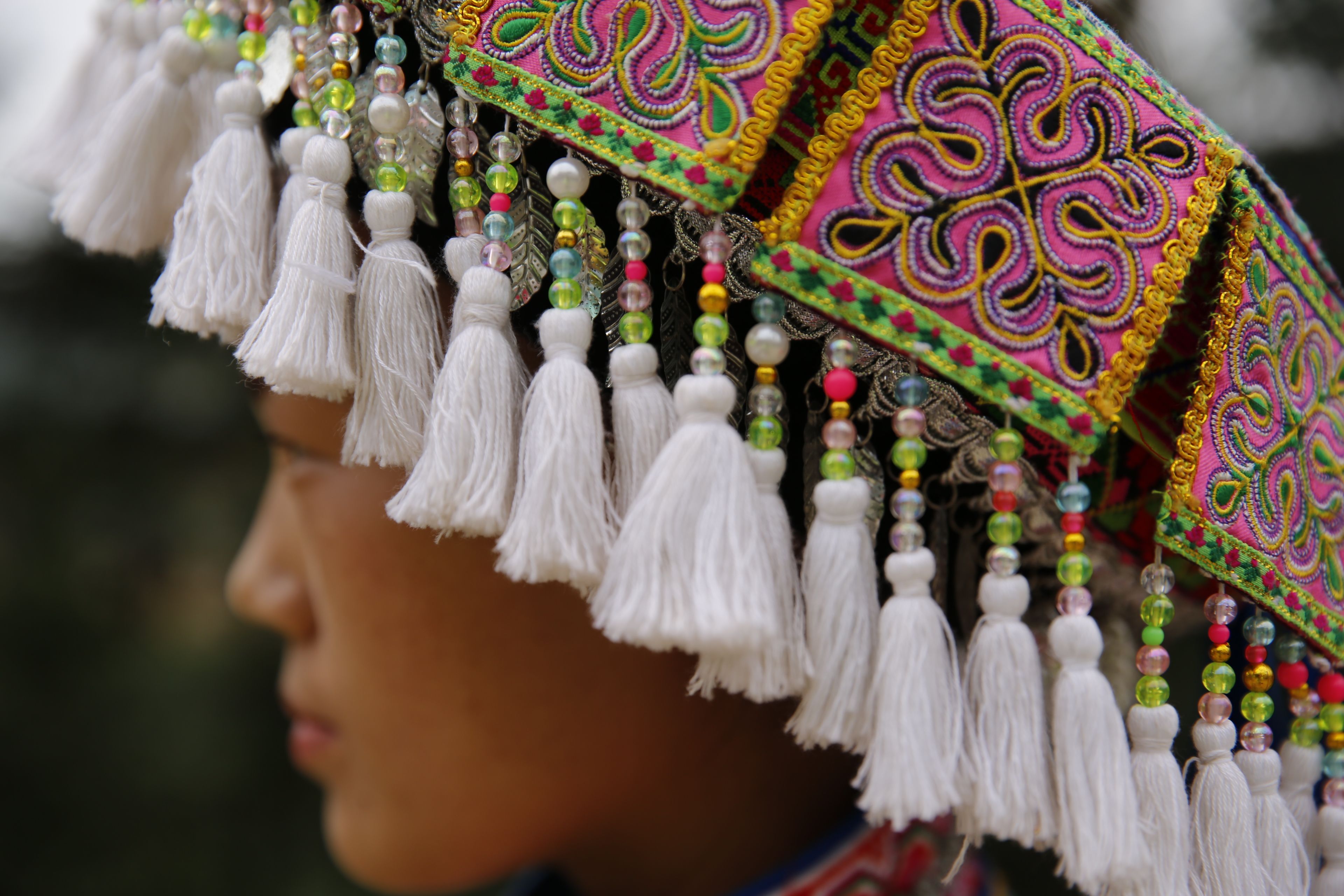 苗族女子服飾花帽-側(cè)面繡花及裝飾2